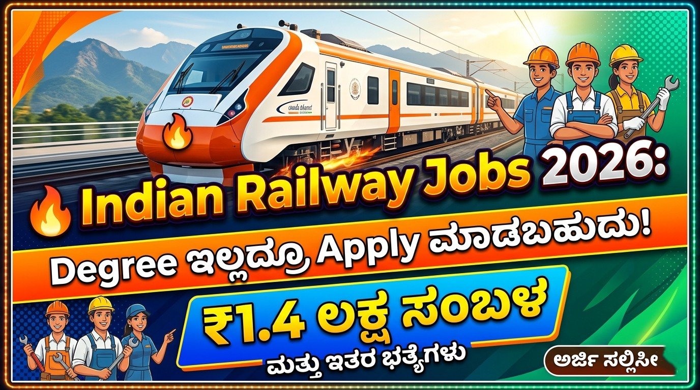 🚆 Indian Railways ನೇಮಕಾತಿ 2026: ಇವತ್ತೇ ಅರ್ಜಿ ಸಲ್ಲಿಸಿ – ₹1.4 ಲಕ್ಷ ಸಂಬಳ! ಸಂಪೂರ್ಣ ಮಾಹಿತಿ ಇಲ್ಲಿದೆ