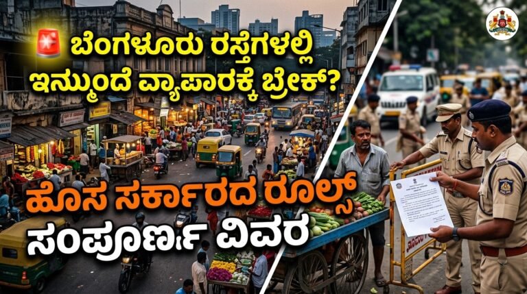 🚨 ಬೆಂಗಳೂರು ರಸ್ತೆಗಳಲ್ಲಿ ಇನ್ಮುಂದೆ ವ್ಯಾಪಾರಕ್ಕೆ ಬ್ರೇಕ್? ಹೊಸ ಸರ್ಕಾರದ ರೂಲ್ಸ್ ಸಂಪೂರ್ಣ ವಿವರ ಬೆಂಗಳೂರು ನಗರದ ಬೀದಿ ವ್ಯಾಪಾರಿಗಳಿಗೆ ದೊಡ್ಡ ಬದಲಾವಣೆ ಎದುರಾಗುತ್ತಿದೆ. ರಾಜ್ಯ ಸರ್ಕಾರ …