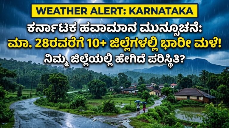 🌧️ ಕರ್ನಾಟಕ ಹವಾಮಾನ ಅಲರ್ಟ್: ಮಾರ್ಚ್ 28ರವರೆಗೆ 10ಕ್ಕೂ ಹೆಚ್ಚು ಜಿಲ್ಲೆಗಳಲ್ಲಿ ಗುಡುಗು-ಮಿಂಚಿನೊಂದಿಗೆ ಭಾರೀ ಮಳೆ!