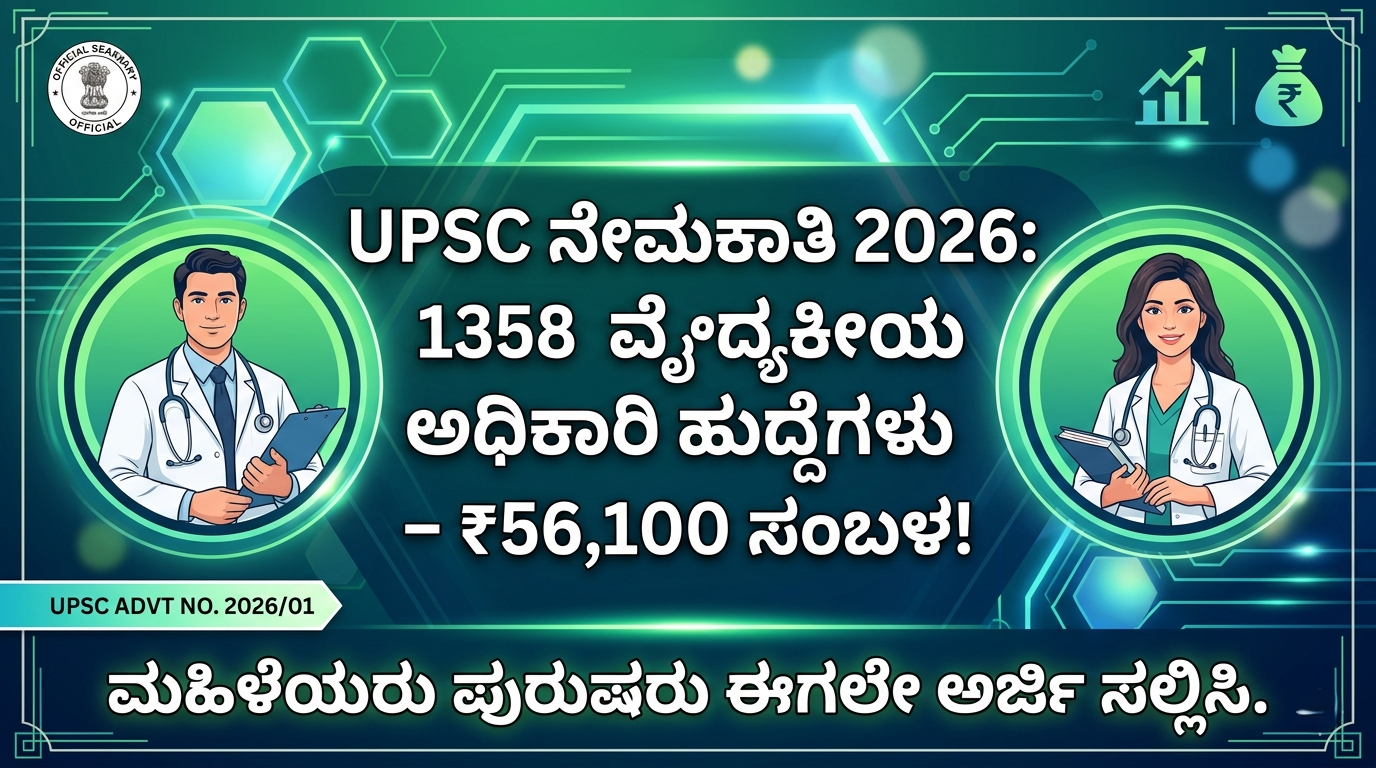 UPSC ನೇಮಕಾತಿ 2026: 1358 ವೈದ್ಯಕೀಯ ಅಧಿಕಾರಿ ಹುದ್ದೆಗಳು – ಮಹಿಳೆಯರು ಪುರುಷರು ಅರ್ಜಿ ಸಲ್ಲಿಸಿ ಸಂಪೂರ್ಣ ಮಾಹಿತಿ